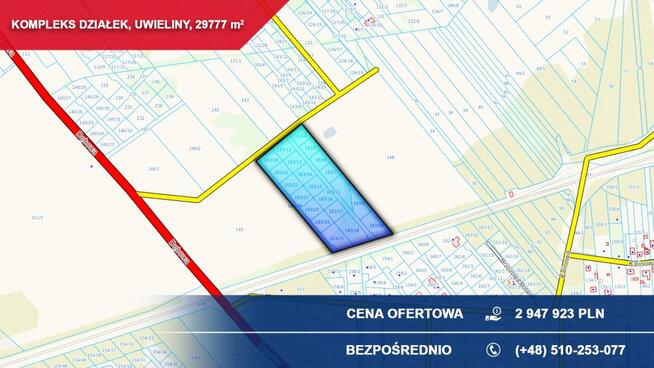 Kompleks 21 działek budowlanych 3ha Uwieliny (gm. Prażmów) z MPZP! Pod osiedle! Lokalizacja: Uwieliny, gmina Prażmów, ...