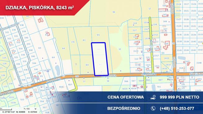 Oferuję na sprzedaż atrakcyjną działkę budowlaną o powierzchni 1000 m², położoną w miejscowości Piskórka, gmina ...