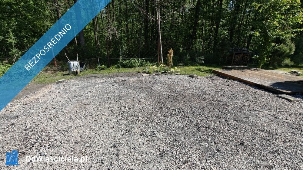 Na terenie działki był drewniany domek, który spłonął. Pozostało ustabilizowane podłoże pod domek o powierzchni ok. 50m2